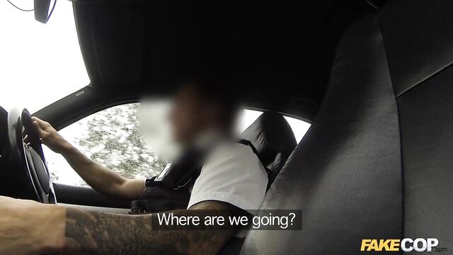 This young student had such short shorts I could see her arse cheeks poking out of the bottom. I got into character and went in hot pursuit to pull her over in a quiet lay-by. Underneath the hippy clothes I could tell there was a beautiful pair of natural tits that I needed to inspect. Her submissive behaviour gave me a right old 'die-hard,' and the air inside the car was becoming red heat. I think she presumed that getting fucked in the ass by a policeman was the normal way to keep on the right side of the system.