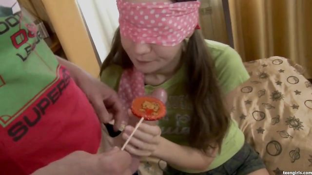 - Description: This young cutie just loves to use her mouth in all kinds of slutty ways! Her boyfriend blindfolds her, and she eagerly opens her mouth, willing to take whatever he wants to give her. At first he slides a lollipop in to her gullet, and she licks it erotically, just as if it was a cock. Then, as her boyfriend unbuckles his pants with the other hand, he slides the real thing into her mouth! She rapidly starts pumping her lips up and down on the knob, groaning in delight as she tastes the first drops of salty precum. Her stud quickly slips it into her pussy from the back, rutting her hard and fast before he dumps a load in her throat.