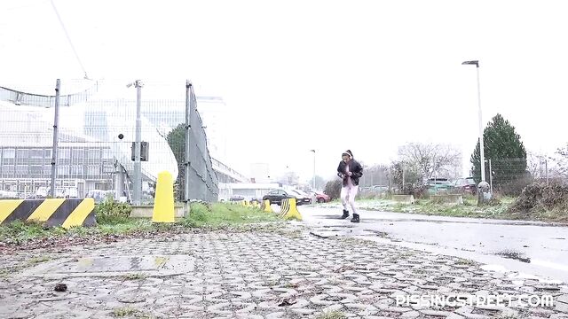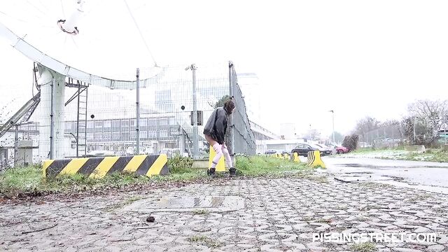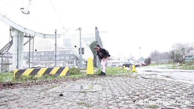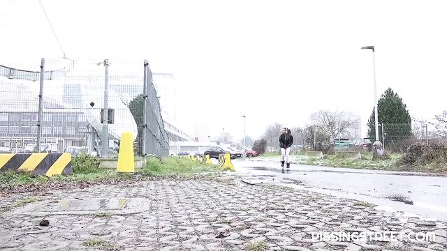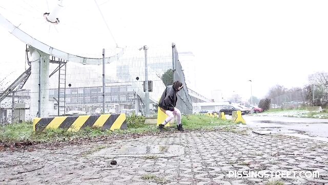 - Description: She just looks around, shows her pussy and peees