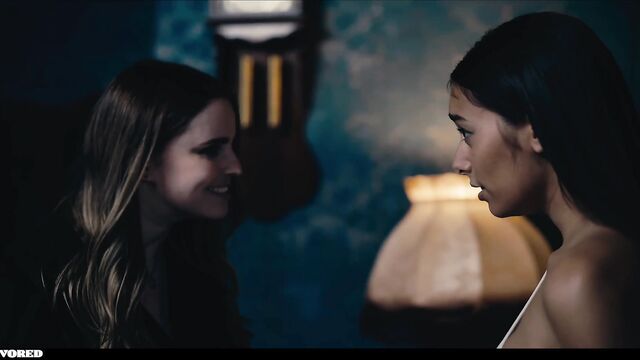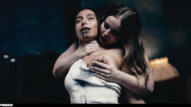 Codi Vore and Shelena scissoring in lesbian film from Vored