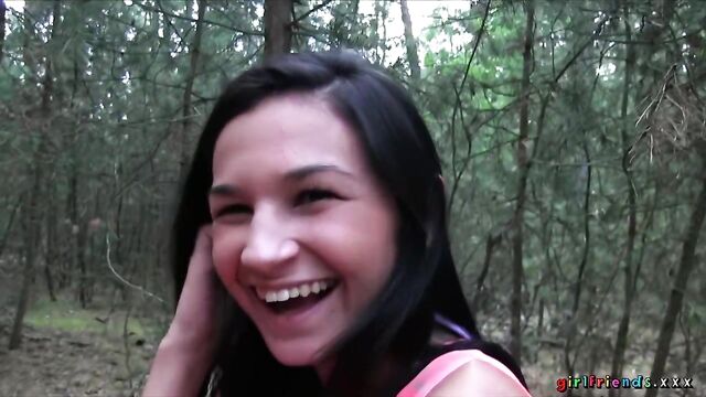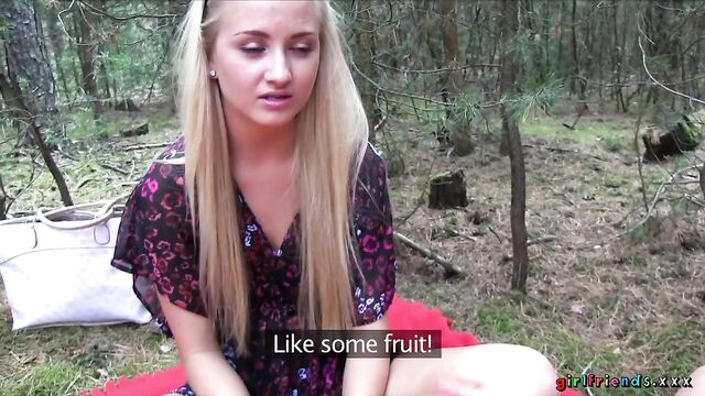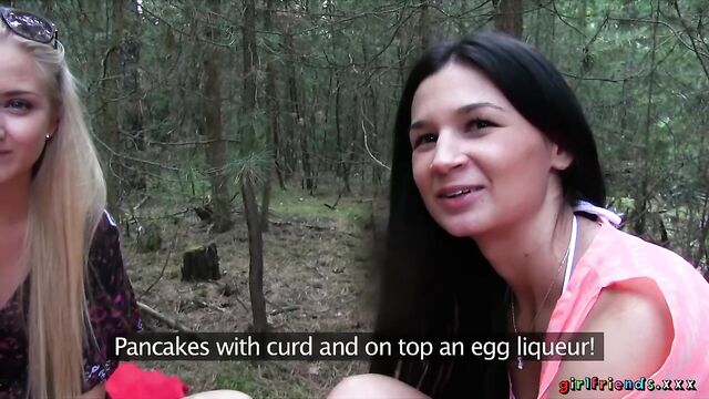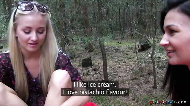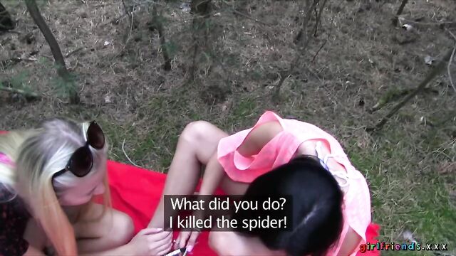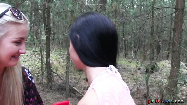 The girls, continuing with their day at the lake, venture in to the unknown surrounding of the nearby woods! They quickly get tired of rambling aimlessly and find a nice spot to put down their blanket. Keira wants to have another taste of Kayla