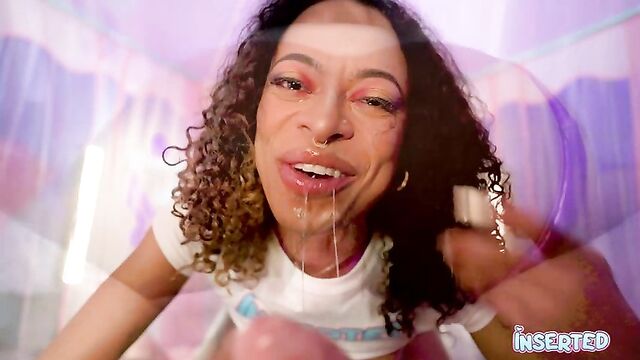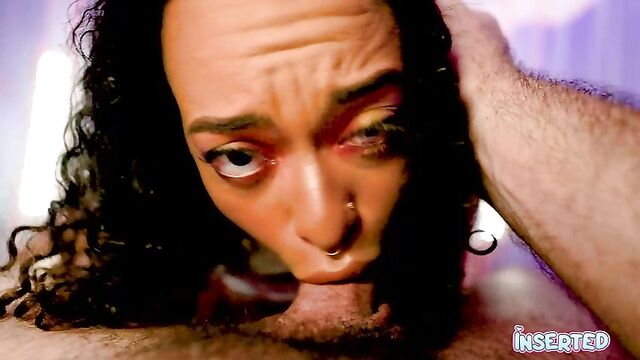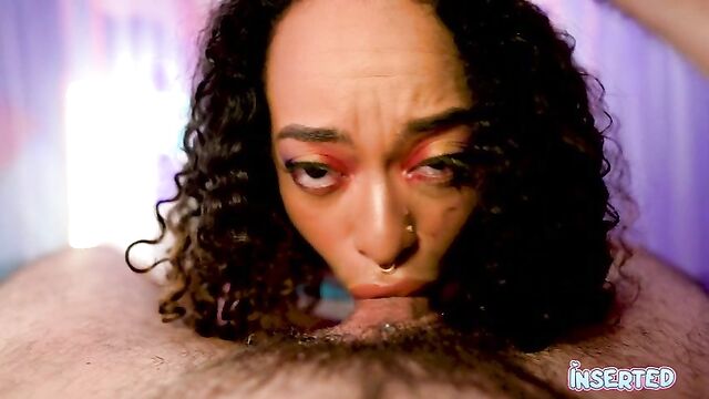 Ava's luscious curves and irresistible charm will leave you craving more. With her natural tits and a pussy that's "puffy and fat," she invites you to explore every inch of her body. Watch as she teases you with her long, curly hair and a mischievous smile, her tongue playfully sticking out. Her big ass and natural tits are on full display, begging to be touched and adored. Ava's passion is palpable as she sucks cock with an insatiable hunger, her lips wrapped tight around your shaft. Feel her saliva running down as she takes you deep, her eyes locked on yours. This Inserted scene is a wild ride of pleasure, from her playful teasing to the intense, sloppy cock sucking that will leave you begging for more. Ava's enthusiasm and skill make this a must-watch for any fan of sensual, uninhibited fun.