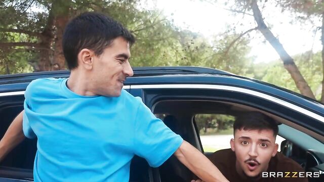 Horny hottie La Petite Ange gets her faithful friend to film her on a cumwalk for her sexy content channel. When two strangers (Jordi and Yeri Blue) catcall them while driving by, La Petite Ange decides to take her on-cam exploits to a whole new horny level as she takes them both on and gets double teamed in a wild threeway!