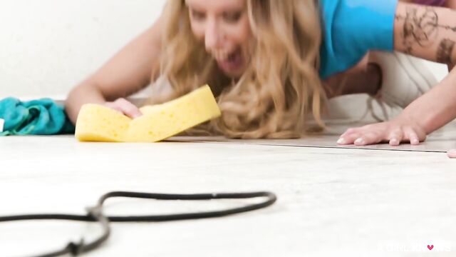 Mellany and Ada can't resist each other, despite their boss's strict warning. The excitement of the possibility of being caught only adds to their intense desire. Once they have the chance, these mischievous maids don't hesitate to get intimate. They quickly undress, exposing their eager bodies, ready for some scissoring and squirting. Through their moans and shudders, they explore new levels of pleasure, showing that sometimes, getting a little dirty is the best way to have fun.