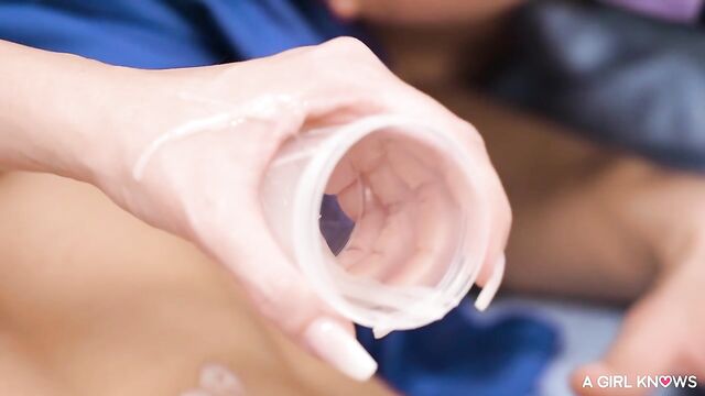 Sophia Locke is in her room with her boyfriend, Pavlos, when she realizes she is late. She sprints to her exam, leaving Pavlos's cock standing at attention. Clea and Jarushka pounce on the unsuspecting Pavlos, their hands exploring every inch of his cock. They stroke and rub their big tits in his face, edging him closer to eruption, finally milking his shaft into a medical cup. But when Sophia returns to find her roomies naked and her man's cum in a cup, she's not just mad – she's horny. Strapping on a thick dildo, she's ready to turn the tables on Clea, fucking her into submission, while Jarushka rubs her clit in a frenzy of self-pleasure.