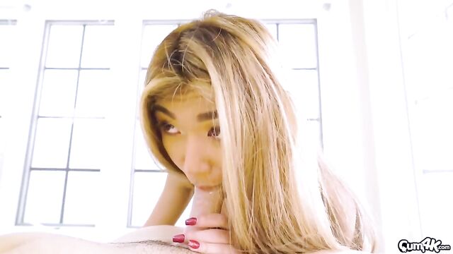 Cara Trinity is looking sexy in her sailor outfit but it doesn't take this hot Asian babe long to strip her outfit off showing off her petite body and her tight shaved pussy. Cara pulls her vibrator out and starts rubbing it all around her clit getting herself nice and wet before she gets fucked. Cara slobbers on his thick cock before riding him like the little slut she is.