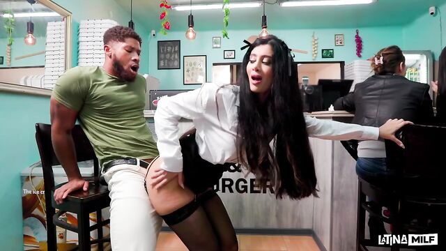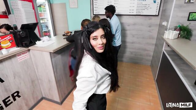 - Description: In the chaotic rush of a walk-in pizza joint, waitress Marina Maya dishes out delights beyond the menu. She's already entangled in a secret fling with the cook, stealing heated kitchen fucks amid sizzling ovens. Spotting a handsome customer, she drops to her knees behind the serving counter for a risky, hidden blowjob while orders fly. On her break, Marina lures the customer to the kitchen for a no-holds-barred threesome. Pinned between them, her holes get stretched in pounding double-team action. Cum erupts across her face and pussy in the steamy climax. Dare to order this risky slice?