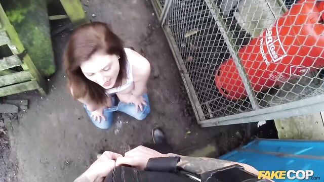 On a cold frosty morning I spot a beautiful ass walking along the side of a country road in the middle of nowhere. I stopped to see if I could be of service and in her sexy European accent she told me that she was on her way to work and was going to be late. I offered her a ride like the shining knight I am. She was very grateful for the lift to work, so grateful in fact that she let me fuck her in the ass. Being a cop has never been so much fun!