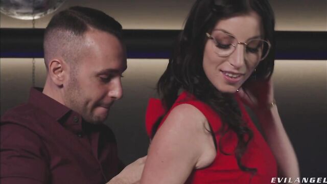 Enchanting brunette secretary Sandrillon rocks a stunning crimson dress. She demands assistance from co-worker Raul Costa with an urgent office matter. They have a small spat, but then they share romantic kisses! He unzips her dress, leaving her in only skimpy, string underwear. As Sandrillon speaks French to him, Raul becomes aroused. She kneels to suck his boner. Sandrillon deepthroats his big cock with confidence. Raul strips off her panties, smacks her ass and plants his face between her butt cheeks for a rim job. Sandrillon takes a pounding, doggie-style pussy fuck. Raul spreads her legs to eat her wet cunt. The natural-bodied babe takes his schlong back in her twat, and then Raul fucks her up the bunghole! Anal slamming leads to an ass-to-mouth blowjob. Raul strokes his tool until he launches semen, drenching Sandrillon in a frothy cum facial.