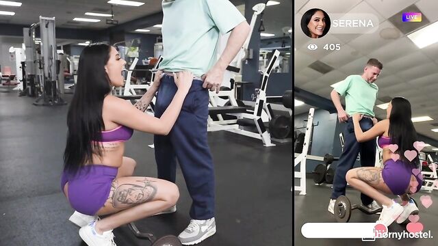 Description: Serena Santos arrives and is greeted by Selina Bentz, who gives her a tour of the very exclusive gym, which comes with many perks. The best part is influencer filming is allowed! Happy that the gym is still quite empty she does her influencer video setup and start working out, drawing the attention of Tony Rubino who gets closer, for a better look at her round ass. Her pants rips during a squat and she notices Tony sitting behind her with a big erection she can't say no to. Selina comes over to hand her the access card and catches them having sex and joins them totally forgetting that the phone is still streaming online.