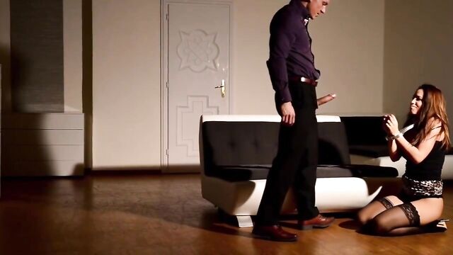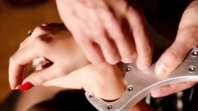 Satin Bloom gets off on having her movements restricted during sex. Today her Master handcuffs her wrists to her neck so he can bend her over and double penetrate her with his cock and a fluffy tail butt plug.