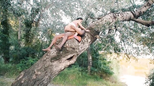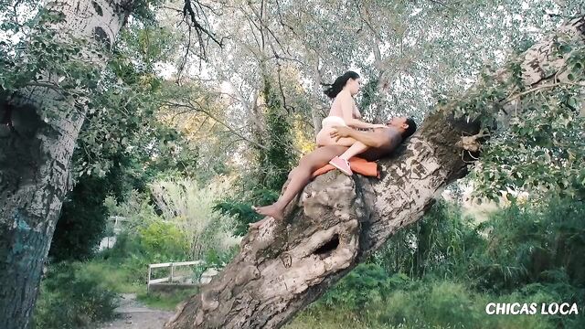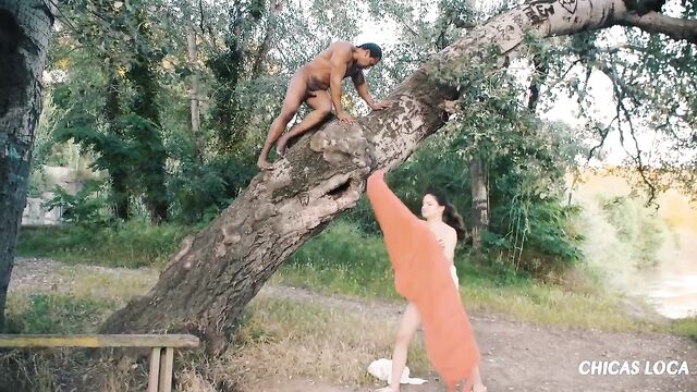 Pretty Italian chick Francesca DiCaprio wants to experience nature in a different way. She climbs up a tree with Franco Roccaforte and rides his dick like a wild sex beast. Then, the passionate fuck fest continues on the ground, where Francesca finally receives Franco's load.