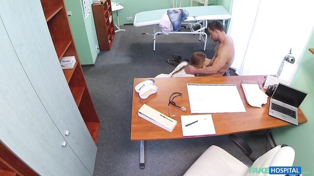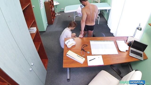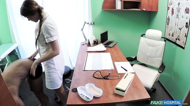 • Description: A nurse can get up to a lot of mischief, if she so wishes. Today I noticed a hunk of a guy going into the doctors office, so I stopped the doctor outside and told him of an emergency down the hall, and that I would take good care of his patient. So I went in and quickly established that his problem, required him to strip off for a good examination of his muscles. What a physique! I could see that he must work out 3 or 4 times a week, every week. Yummy. After I showed him a few stretching exercises, I proposed we exercise his ankle amongst other bodily equipment in the doctors office. I first set about working my mouth around his hard tool and then let him lick my soaking wet pussy. From here we fucked across the desk and chairs, finishing up by me swallowing all his cum in my mouth. Maybe I'll meet this patient again, maybe not? But I hope so.