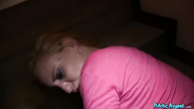- Description: I find myself in a different country, walking around on the streets. I was just taking it all in when suddenly out of nowhere this ridiculously beautiful blonde walks on by. I had to talk to her. I ran up to her and stopped her. I told her about the ‘business’, just to break the ice and see if I could get her interested. Thankfully she was! I had a wad of cash in my pocket that I knew she wouldn’t be able to resist! I told her we had this expensive lingerie range that she’d be perfect for, I know I’d like to see her in some! Anyway, she was up for going to a casting, if we could find somewhere a little more private. We found this building and went to the top of the stair case, gave us a fright when we got up there though, bloody lift kept going on and off! When we knew we were alone, I handed the money over and before I knew it she had a her top off (I didn’t even ask! She wasn’t wearing a bra either!) Oh my god, my dick was so hard. I told her I’d like to have a little fun if she was up for it. I gave her another (much bigger!) wad of cash for some fast sex. She took it, put it in her bag and started giving me the best blowjob! I can’t tell you how good it felt! She really knew what she was doing, staring right up at the camera as she teased my cock with her tongue! I got her up, pulled down her skimpy black thong and started giving it to her from behind, she was loving it, she pulled her tits back out from her top so I could watch them bounce around! We found a different spot soon after so she could ride me! We could occasionally hear people but they couldn’t see us and had no idea what we were up to! I finished by cumming all over her pretty face, she loved every second!