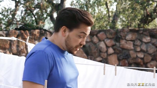 Lulu Chu wants to get fucked good and her old husband can't give her what she needs. While out in the yard, hanging up laundry, Lulu catches the eye of neighbor Kyle Mason. While Lulu's husband isn't looking Kyle comes into the yard to chat and Lulu starts sucking his dick right away. Now, can Lulu drain this guy's cock before the old man figures out what's happening?