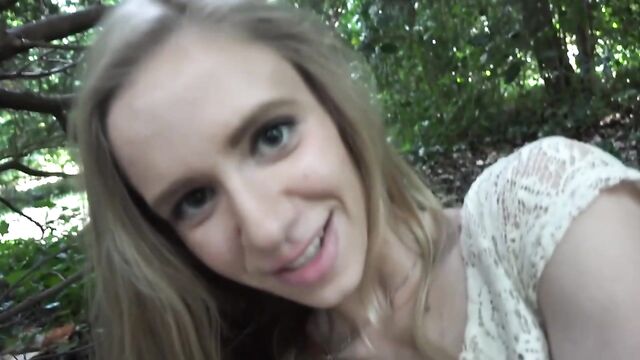 Wanna fuck a barely legal cutie in the woods, ridding her of her innocence? Cause Rachel James is down on her knees waiting for you to put your cock in her mouth then fuck her till she's full of cum.