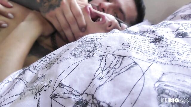 Tattooed stud Santiago Garcia joins beautiful Lorena Castro in a passionate fuck. He fingers her wet pussy hard until she cums then bangs it deep from behind. Horny Lorena rides Santiago’s throbbing cock and finally receives a memorable facial.