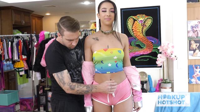 Bryan Gozzling and Kiarra Kai blowjob porn from Hookup Hotshot