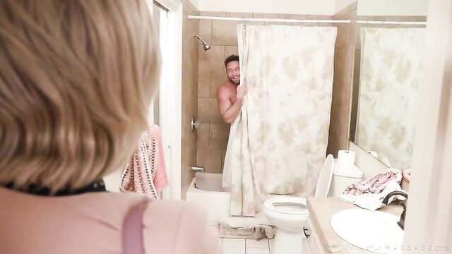 Description: Thinking his realtor wife Francine (Adira Allure) will be at an open house all day, James ( Seth Gamble ) invites his lover Lara ( ) over to his place for some forbidden hanky panky. Lara's a masseuse at the NURU massage parlor James frequents, so he's done something extra special today: he's set up a NURU mat in his living room. This means Lara will not only be able to give him a NURU massage, but ALSO a happy ending... something they haven't been able to pull off while at the parlor. But as James and Lara start getting down to business, he has to dodge various interruptions from his annoying wife, both in the shower and while getting massaged on the mat... turning the entire ordeal into one very risky rendezvous.
