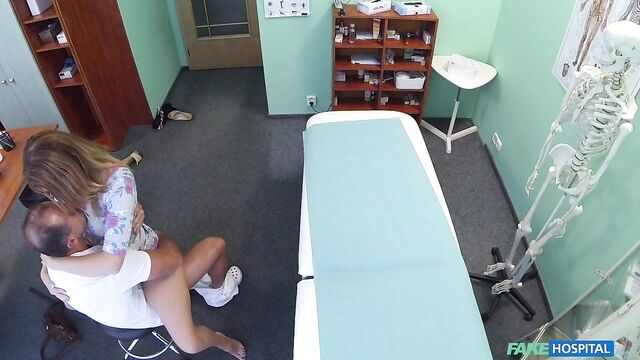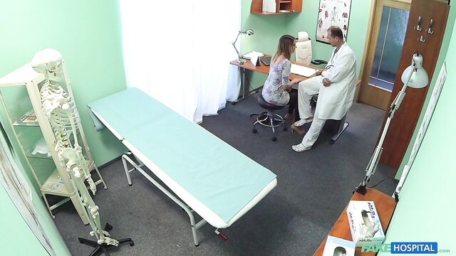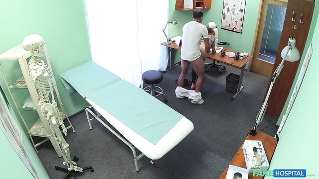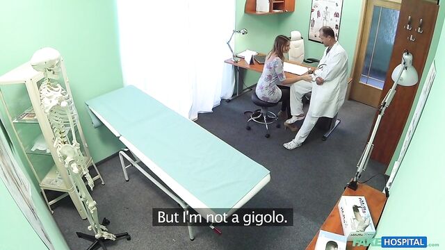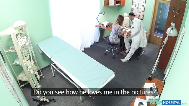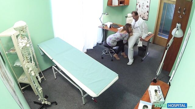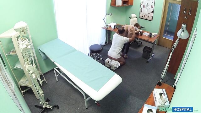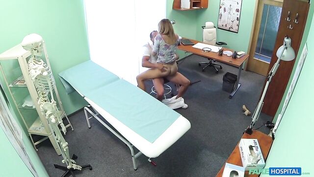 - Description: I had a patient come in today with an unusual problem. It wasn't something that was affecting her physically, she was worried about something in her personal life. At first I was a little apprehensive because I am first and foremost a doctor that deals predominantly with problems in direct relation to physical health. But anyway, I allowed her to tell me. It turns out her husband has recently told her that he is gay. I was taken aback, it seems an odd problem to bring along to your doctor. She seemed to think there was some kind of pill that could change his sexual orientation. Of course I told her there is no such thing, a person does not choose what sexual orientation they are. When she realised this, her mood changed. She started coming on to me, telling me about how she hasn't had sex for so long. I went over to her side of the desk and she started rubbing my leg and then slowly moved up to my cock. I told her to stop. I checked to see if any patients were waiting and they weren't. So I came back in let her do what she wanted. She pulled my trousers down and started sucking my now hard cock! This babe just needed a good fucking! I got her up, bent her over the desk, pulled down her panties and started fucking her slowly before drilling my cock deep inside her shaved pussy! I got the rest of her clothes off and pulled her over to the bed. Now she was naked, I could gaze in to perfect tits as they bounced around as I fucked her harder and harder. We did it in an array of different positions before I finished by emptying my load all over her chest!