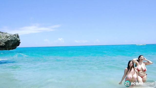 On Location North Coast closes with the beach challenge. All eight of these incredible girls race along the beach in a spectacular bikini run, their big breasts popping out of their tops. They play on the beach like it's a giant dance floor, jumping, screaming, shaking and whooping it up. The race continues to the pool, boobs bouncing like mad. The wild bunch jump into the pool and have a mass oiling party. They're still merrily oiling away when Dave calls on their tablet. "Girls, that was great, and I really enjoyed your little oiling show! Yes, I was watching. And I'm happy to announce that we have a winner...or winners. Yes, I said winners. You girls are all so great, you're all winners! " The girls jump back into the pool (Codi cannonballs in) for the last time. And so ends our story, a tale of eight sensational models from around the globe, a united nations of big breasts, together on a tropical island where friendships were made and challenges faced.