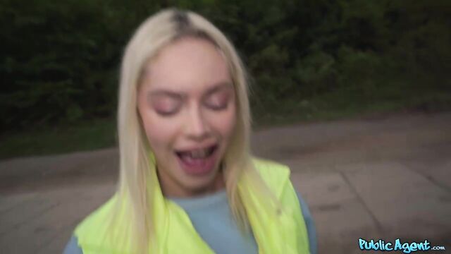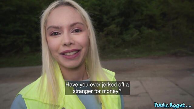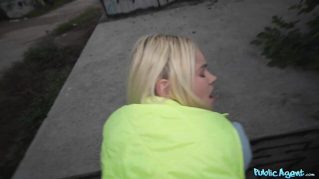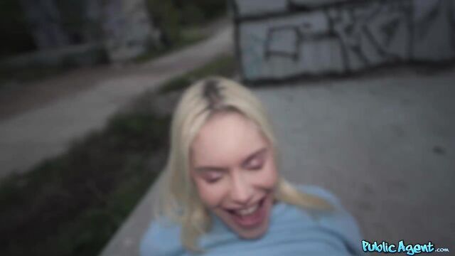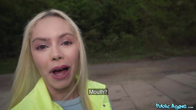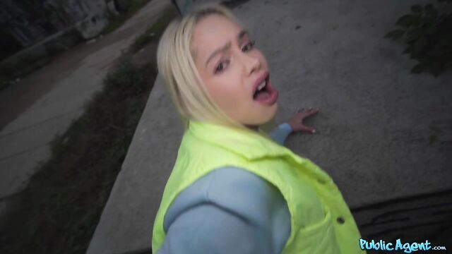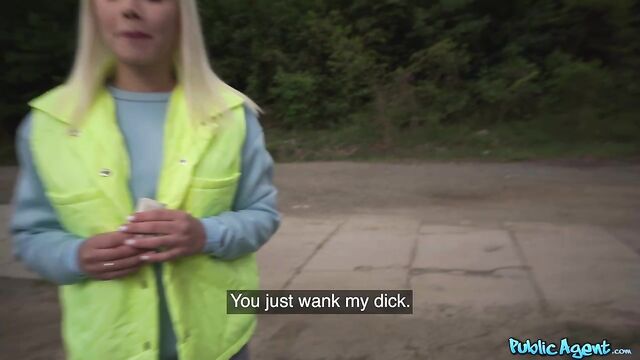 Description: I was enjoying a sneaky wank outdoors when smoking hot blonde Vivian Lola happened to run by. I asked the sexy Brazilian babe if she would be willing to play with my dick in exchange for cash. Vivian agreed, and after treating me to a nice handjob, the filthy mare got on her knees and sucked me off! Seeing my long, thick cock was getting her horny, so Vivian stuck out her arse and invited me to fuck her from behind in standing doggy, and then I ripped open her fishnet tights and penetrated the total nymph in missionary position. Lola pulled up her top so that I could see her big fake titties, and then once I’d had my fill, I spunked inside her cum-hungry mouth!