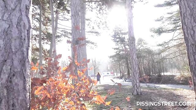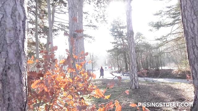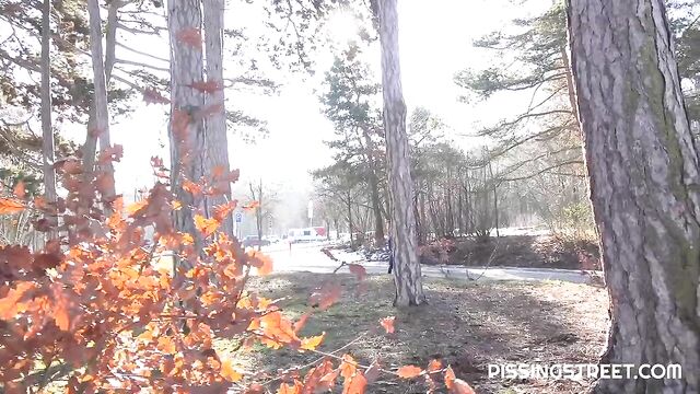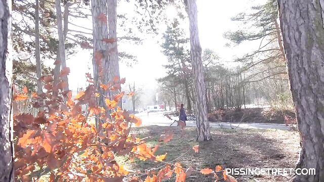 Watch sexy Katy Rose peeing outside