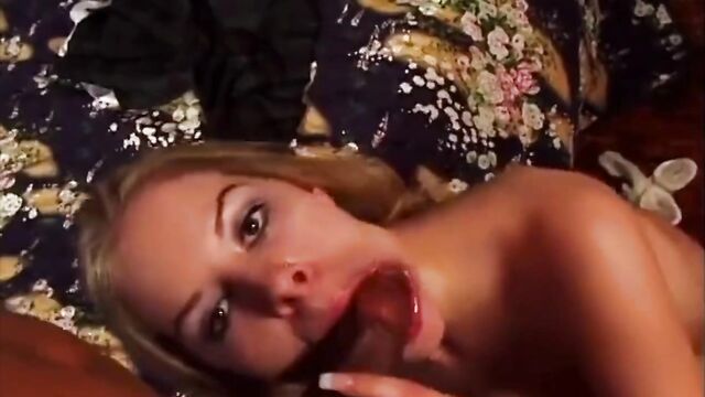 Some guys have all the God damn luck! This stud is cruising along the street when a beautiful and busty blond schoolgirl waves him over. He is intrigued to find out what a stunner like this wants with an average guy like him! The cutie tells him that her ride hasn't turned up and that she is scared about being left alone by herself in public. The considerate stud takes her back to his house so that she can ring her parents, deviously seducing her along the way. There is nothing that can bet the feeling of a luscious young blond like this sucking on your cock! After she has been fucked well, she opens her mouth to swallow the load.
