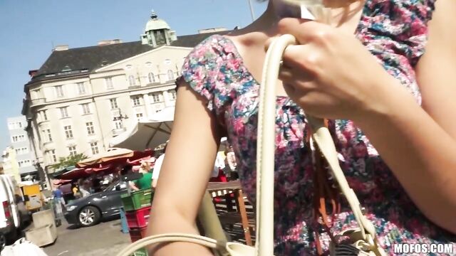 I was walking around the local market when I spotted Catherine. She seemed to be wandering around with nothing better to do so I decided to chat her up. She might look like the women next door but she parties like a whore and it wasn't hard to convince her to do it in plain site.