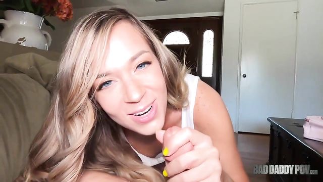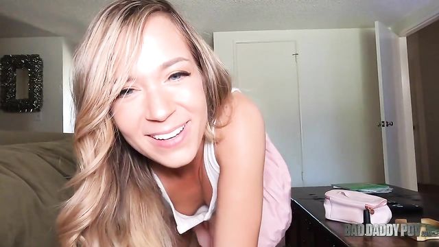 Rory Knox is a hot blonde teen who is spending quality time with her step dad, and they can't deny their attraction to each other. She helps him release some stress by sucking his cock and letting him fuck her tight pussy from behind.