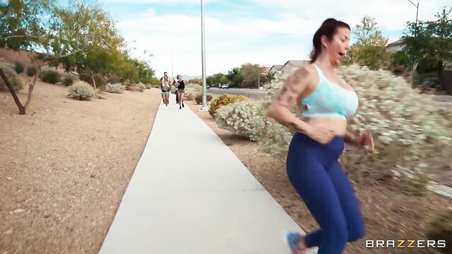 Mazee and Mike Hardy are dragged by their wives to their run club, much to their dismay, but when they catch a glimpse of fellow hot MILF jogger Alexis Fawx they’re not disappointed to be there anymore! Alexis likes what she sees too and flirts with them, before coming up with a sneaky plan to get the guys to follow her off course back to her house for a much more exciting way to get their cardio workout: a hot threeway fucking!