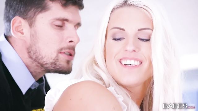 When hunky security guard Kristof Cale sat down to eat his dinner, the last thing he expected to see on his security camera was Blanche Bradburry rubbing her tight pussy! He tried to pass it off as no big deal, but as soon as the busty blonde babe looked in his eyes, she could tell that he was just as horny as she was. Rubbing his hard cock through his pants, Blanche slowly teased him with her luscious lips, giving him a sensual and erotic blowjob. Kristof likes to give as much as receive, though, so soon the two lovebirds were fucking all over the office!