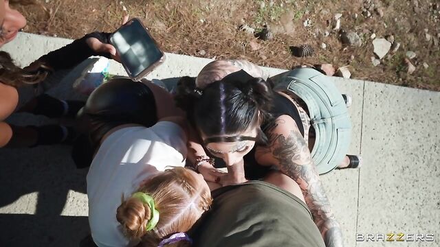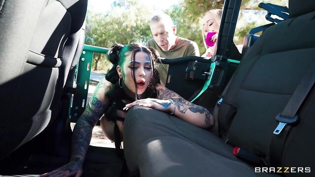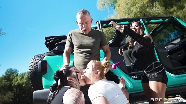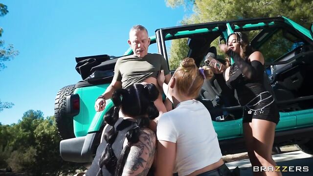 Zoey Uso, Valentine Vixen and their pervy party buddy are hitching a ride to a bush bash. When finding a ride turns out to be more challenging than expected, Zoey uses a suction dildo to get some attention. Mick Blue pulls his hot ride over and finds out quick that he’s just bumped into some serious baddies who want to get their fuck on. Mick gives the ladies a ride after they give him a hardcore public sex adventure he won’t forget.