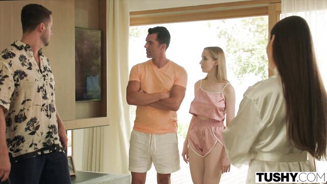 Marco Bull, Dan Damage, Polly Yangs and Milan Cheek small tits screw from Tushy