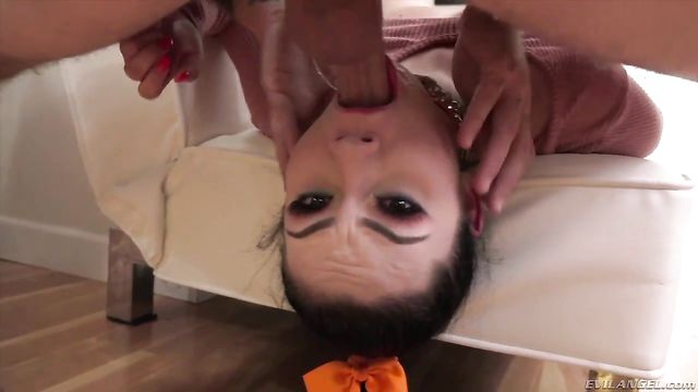 Rebellious teen Lenna Lux loves chatting with older men on the Internet. She meets director/stud Bryan Gozzling online, and soon she's at his door, proudly calling herself an '18-year-old cum dumpster'! Bryan gropes her plump titties. He yanks on her ponytail as he ruthlessly fucks her face. The pornographer drills her well-groomed gash and then bends her over and porks her from behind. Lenna hangs her head off of the couch and Bryan crams his cock into her throat, making Lenna gush gag-spit. The graphic, animalistic hookup climaxes as Bryan's sperm decorates Lenna's adorable face.