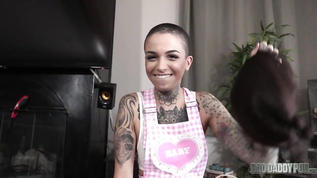 - Description: We’re always taught to straighten up and live properly. We don’t how but somehow, Leigh Raven missed one of those classes and didn’t learn the straight part of it. Being a teen mooching off her stepdad and doing what the fuck she wants with her body. On top of that, she even took in a female lover. The stepdad didn’t have choice but to teach Leigh another set of lessons. With his dick. Leigh Raven admires her step father. She trusts him and feels very safe around him. He earned her respect when he graciously accepted her lifestyle. Leigh Raven has been abused and punished enough. Her mom is mean and Leigh doesn't like that her sweet step daddy is stuck with such a cunt. She decides that it is time to reward the man of the house. Leigh has never gotten the chance to feel a real man's cock inside her. She wants to have her step daddy be her first. At first he objects to his tattooed step daughter. When Leigh Raven wraps her young lips around his hard cock, he can't resist. He agrees that if his lesbian step daughter wants to start experimenting with her sexuality, it should be with someone who is going to treat her right. He doesn't want to see his beautiful little girl Leigh Raven be violated or disrespected. The all natural tattooed slut goes to work on her step dad's hard cock. She slurps and spits all over his shaft. Leigh Raven sucks cock with passion and excitement. She wants to get him sloppy wet with her mouth before she spreads her young legs open to let him take a turn in her tight pussy. Leigh Raven displays her hairy pussy and all natural bush to her step dad as he works his thick cock into her young cunt. She moans in ecstasy as she is filled with the grown man's cock. Leigh bends over to take a pounding from behind. She pops up her cute butt as he fucks her deep. Leigh Raven talks and screams as she services her step daddy. She wants to make him cum hard and will do whatever it takes. Leigh opens her legs again and gives him her tight young pussy to stroke his cock into. He pumps away until he can't resist. When there is no holding back, he pulls out and dumps his load of cum all over his step daughter. Her tattoos highlight the warm cum all over her slutty young body.