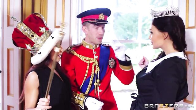 Madison Ivy's tour of London continues with her lifelong dream of making a Palace Guard on duty move. After teasing Danny's big sausage she finally got him to give her bare breast a honk! Madison continued her scandalous ways inside the palace, copping pieces of silverware and shoving them inside her bra! Inside Buckingham, Madison slipped into the private rooms and found the prince fooling around with a maid. Better believe she wanted to give him a blowjob fit for a king! Along with the maid, Madison took her time enjoying the royal scepter, and getting thrown the biggest bone of their lives!