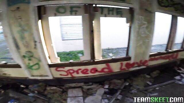 I was looking for some abandoned trailers that my friends told me about to take some photos of street art for a project Im working on when I ran into this cute, busty redhead, Leigh. I asked her where the trailers were and she pointed to the train behind me - since it looked kinda creepy I gave her $20 just to come with me. As we were walking through the train I whipped out my cock and insisted that we do something crazy. At first she was hesitant but as soon as I showed her the money she went in for the . Leigh grabbed my dick and stroked it before getting on her knees and licking every inch of it! Slurping and jerking on my rock hard member made her horny enough for sex - I bent her over and railed her from behind then she rode me until I splurged all over her cute face! Money well spent!