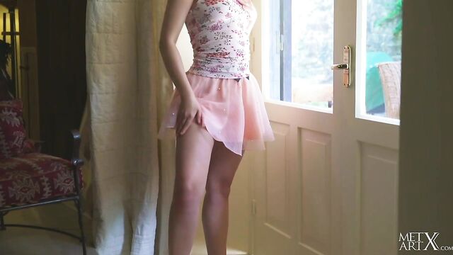 - Description: Adorable Lucretia K may find it hard to paint when she's bored, but it's impossible to concentrate on her work when she's wearing such a short skirt and she's bending down to apply brushstrokes to the canvas. Her peachy ass is mesmerizing. Her panties split her cheeks, snaking down between them to cup her pussy snugly. Such a sight makes you wish she'd never stop painting, but then the time comes and she drops her brush and makes her way inside. In front of the windows, she pulls off her top, her sweet titties bouncing as they come free. At last, she pulls down her skirt and runs her fingers over her pussy, feeling her sex through her panties. Leaning against the wall, thrusting her ass out, she pulls her underwear down around her thighs and her fingers delve between her pussy lips, grinding over her clit, her eyes lingering over her shoulder. She sits with her legs spread wide apart, and sinks two fingers inside her tight, shaved pussy, masturbating with wild desire.