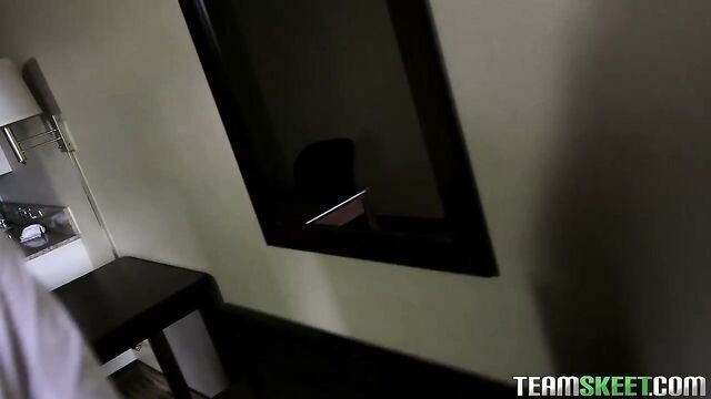 - Description: Bruno was all alone in his hotel room just trying to watch some porn and jerk off; thats when Abbey came in to drop some towels off, except she didnt even knock. Bruno was pissed that she came in without knocking and said hed call her manager but she begged him not to! He said there are ways to fix it and next thing we know shes on her knees slurping and jerking his gigantic dick! He bent Abbey over the bed and pulled down her pants and rammed it into her tight teen pussy from behind! Bruno flipped her over and pounded into her one last time before releasing his load all over her pussy! That should teach her knock before going into someones room...