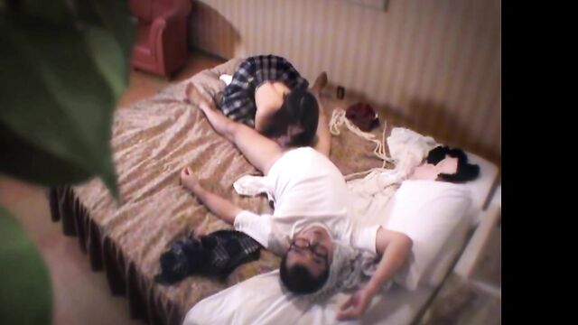 Rika Kitano has a fetish for fucking older men and she hooks up with them on dating apps. This guy wanted to remember his experience of fucking her tight little pussy so he set up a cam in the closet and now you get to play the voyeur and watch! Rika plays the naughty skool gurl so good, begging him to fuck her deeper!