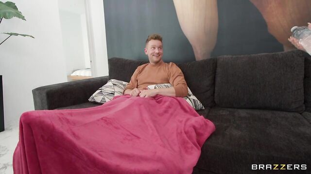 Van Wylde is getting a bj from his hot blonde gf Delilah Day on the couch when he notices her hot, busty roommate Angel Youngs watching them, playing with her huge tits and rubbing her pussy! When Delilah takes a water break, Angel sneaks in and snakes that trouser-snake, deepthroating it before getting pounded doggystyle. The cheaters sneak up to the bedroom, tricking his gf by hiding under a blanket, and Van motorboats those big natties before ripping open Angel's jeans and dicking her down!