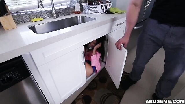 Kira Adams comes by for a good fucking time, at first Jmac is in shocked on how small she is. We see him playing around with her before they start getting down and dirty. She said she likes rough sex so we see her getting man handled all over the kitchen before they move over to the bedroom where they fuck hard. She gets her tiny pussy stuffed from various positions until she gets a huge facial to end things right.