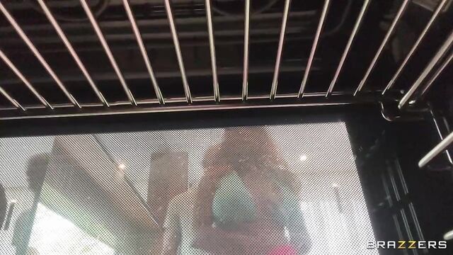 Horny wife Gogo Fukme is just casually baking a pie when Damion Dayski, her big-dicked lover, sneaks up on her and grabs her thick, juicy ass. From there, Gogo and Damion are off to the races, fucking around the kitchen without any regard for getting caught. Luckily for them, Gogo’s husband is an oblivious fool, which is somewhat important because he’s always around. This forces Damion to hide in a variety of places: kitchen island, behind the couch, and behind a curtain... all while continuing sneaky sex right under Gogo’s husband’s nose. Once they are finally left alone, intense fucking ensues, and the icing on the cake, in this case, is a pie right in Gogo’s husband’s face when he catches her cheating!