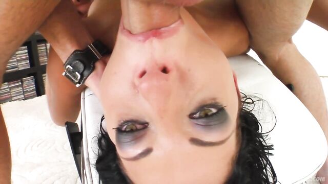 Natalie loves to get pounded hard. A couple of guys work her tight pussy like there's no tomorrow. She swallows all the cum after the hot double vaginal penetration.