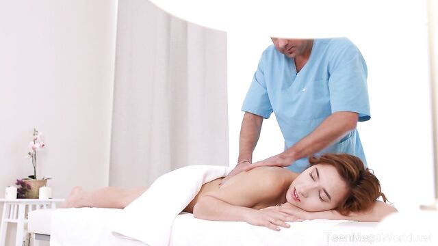 - Description: When red-haired Angie comes to the massage salon, she hopes to enjoy a full-body massage, but she gets a spicy and very satisfying bonus in the end. As usually, she lies down on the massage table and covers her butt with a towel. Masseur starts massaging her naked body and, finally, accidentally touches her shaved pussy. Angie loves that touch so much that she tells him to stop and let her please him in return.