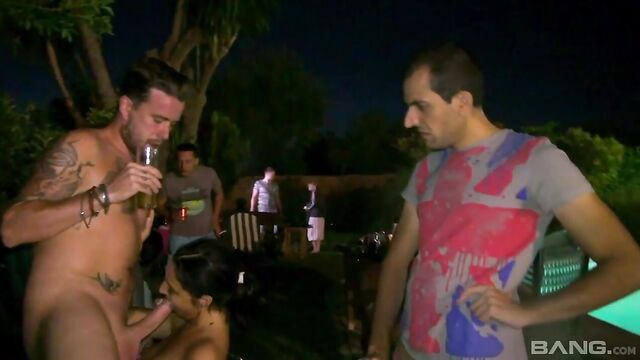 Bianca Ferrero, Mia Melone, Wendy Moon, Babie Dream and Anni Mal know how to party. We're not talking your average come to my house and chill party. We are talking come to the house and get naked and fuck anyone you want party! Watch this chick fuck a guy as another dude watches and jerks off.