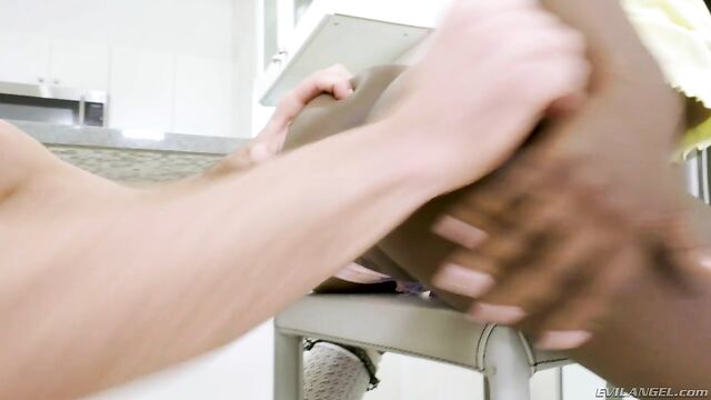 Young, black sweetheart Noemie Bilas has never squirted, so the tiny, all-natural minx begs dominant Latino 'Daddy' Toni Ribas to teach her. Cute Noemie obediently spreads her booty for the older man; he shoves his big boner into the little slut's juicy pussy and then penetrates her tight asshole. She kneels to worship his meat and balls with her mouth. Toni chokes and spits on Noemie. He ruthlessly fucks her holes and fingers her to multiple wet, gushing climaxes. Finally, he cums all over her pretty face.